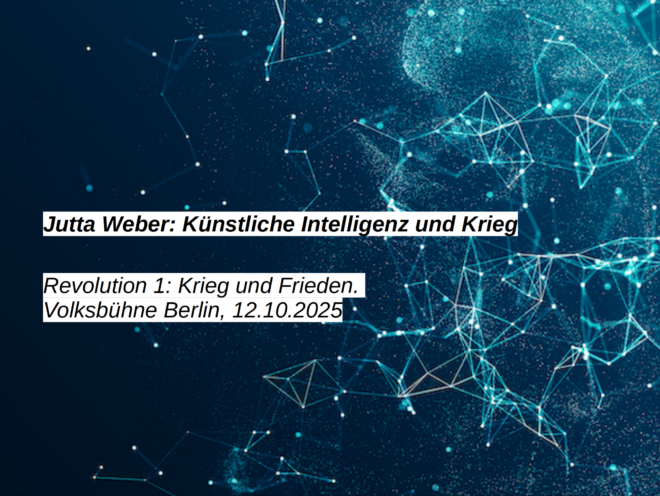 On October 12, 2025, I will give a lecture on Artificial Intelligence and War at the first Festival of Revolutionary Thought – Revolution No. 1: War and Peace, initiated by Sibylle Berg and Martin Sonneborn, at the Volksbühne in Berlin. I will also take part in the panel “Warfare and the Future. On Technorationality, Venture Capital, and Military Imaginaries.”